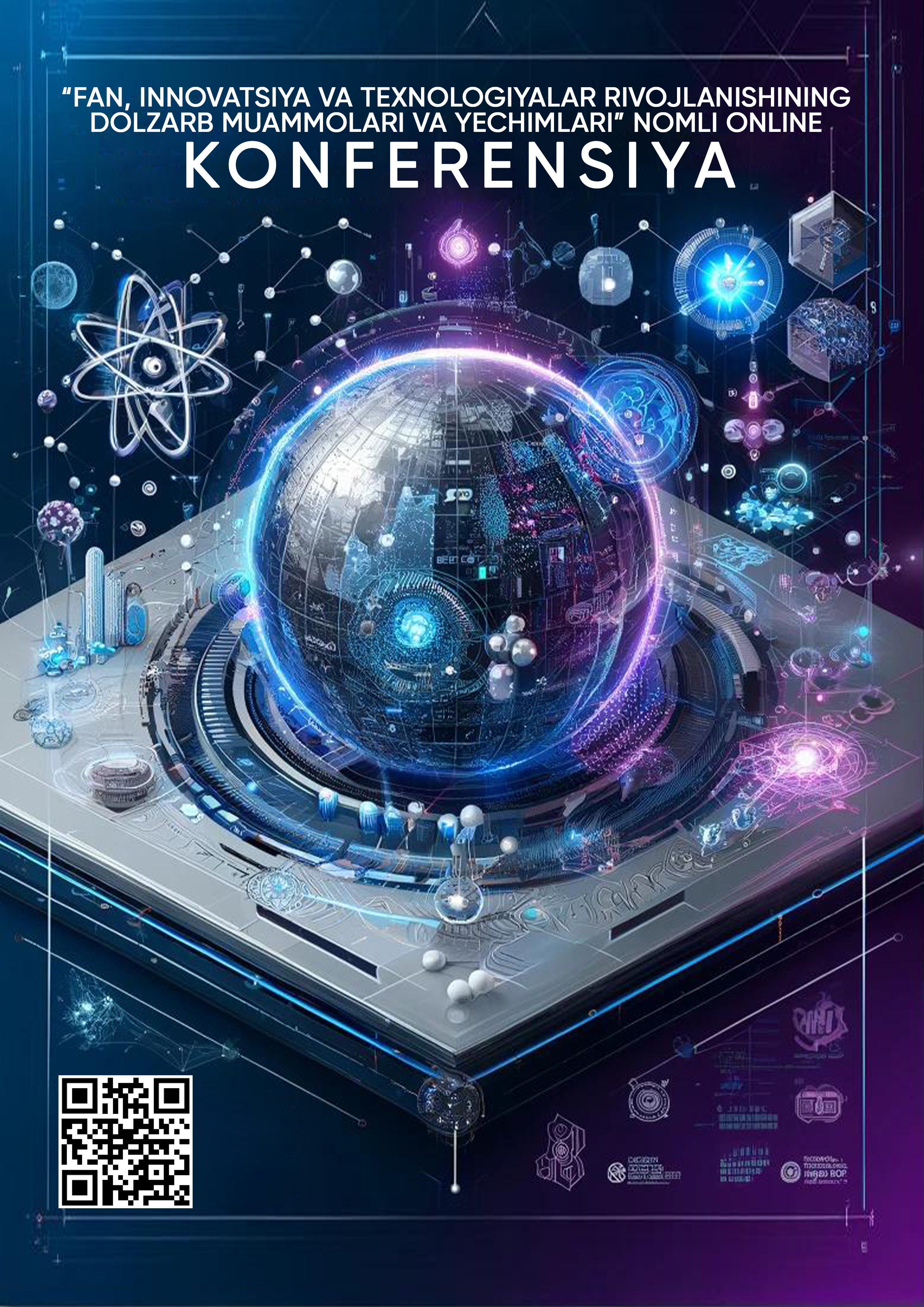 Vol. 1 No. 1 (2025)Ushbu onlayn konferensiyaning asosiy maqsadi, fan, innovatsiya va texnologiyalar sohasidagi dolzarb muammolarni muhokama qilish va ularni hal etish uchun samarali yechimlarni ishlab chiqishdir. Konferensiyaga talabalar, magistrlar, o'qituvchilar, doktorantlar va olimlar o'zlarining yangi innovatsion g‘oyalar va texnologiyalar haqidaqi maqola va tezislarini taqdim etishlari mumkin.